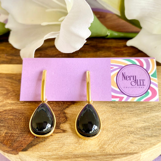 18K Gold Filled Black Dangle Drop