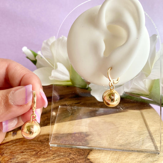18K Gold Filled Bead Dangle Lever Back Earrings