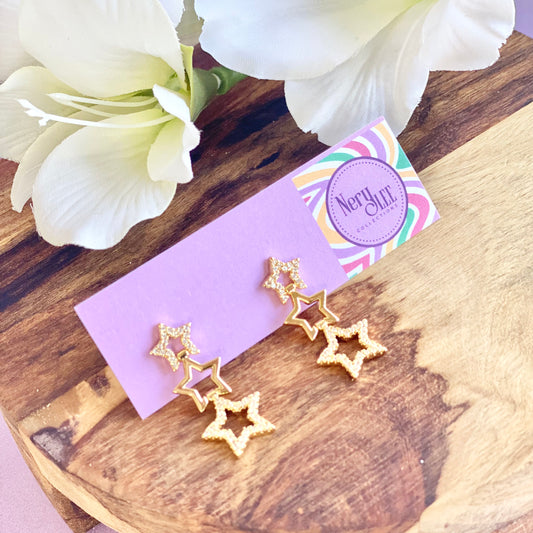 18K Gold Filled Dangle Stars With Cubic Zirconia